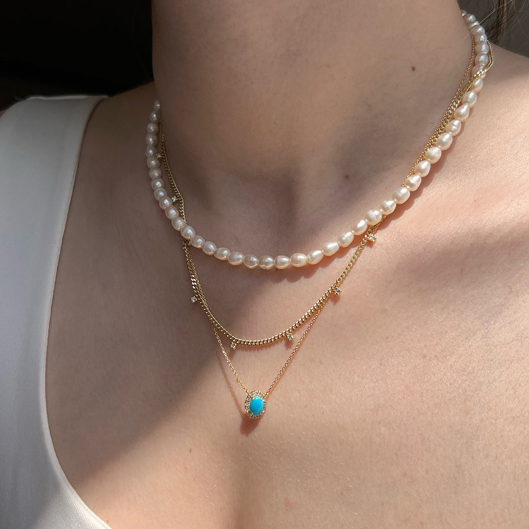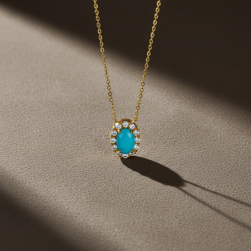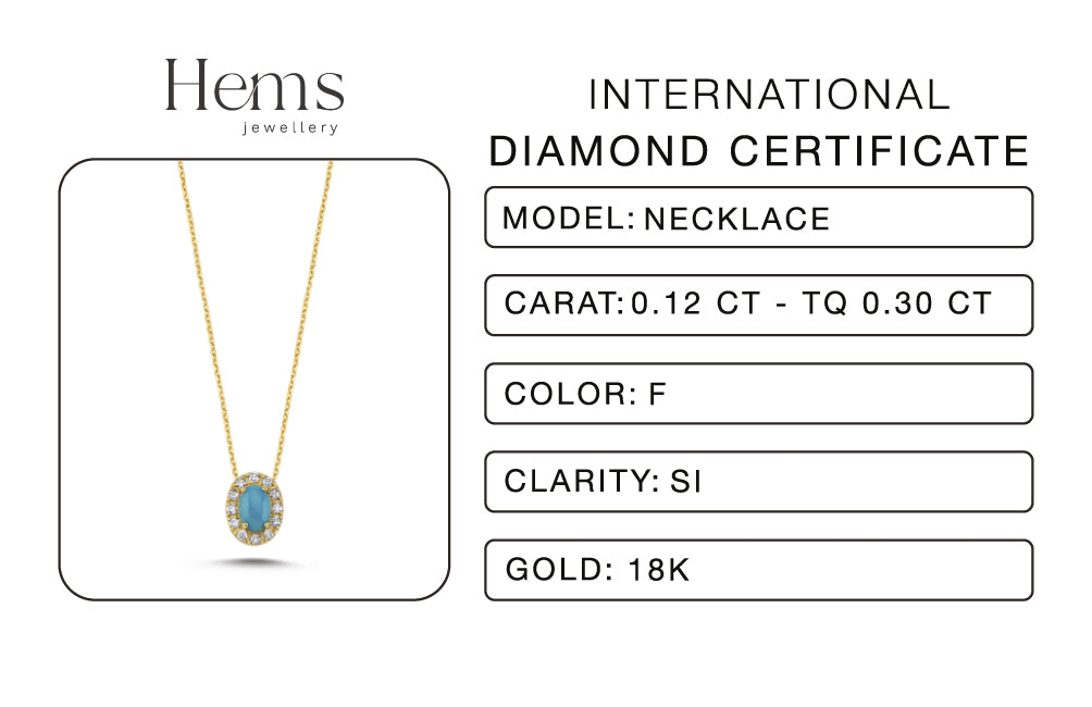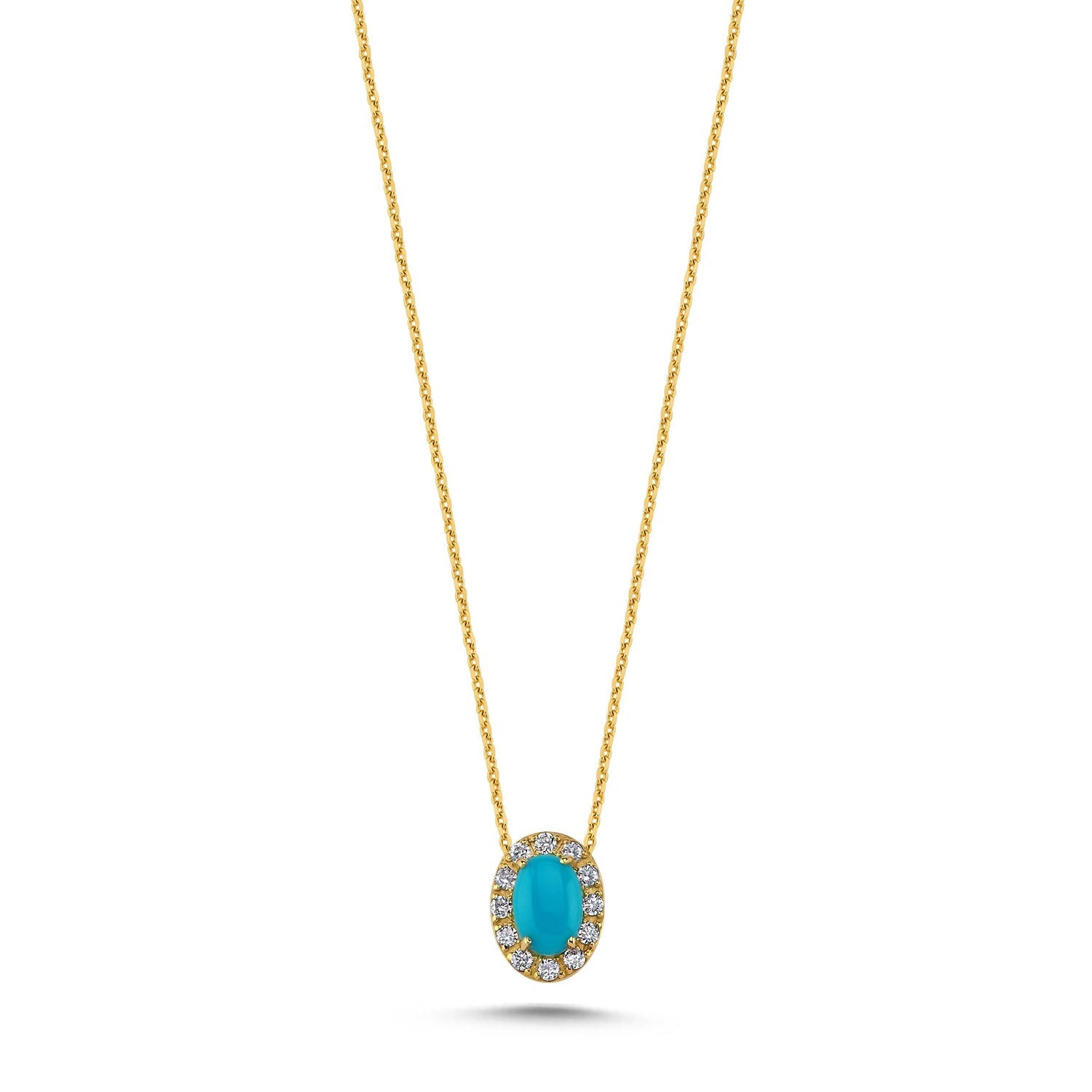18 Ayar Altın Pırlanta Elips Turkuaz Kolye