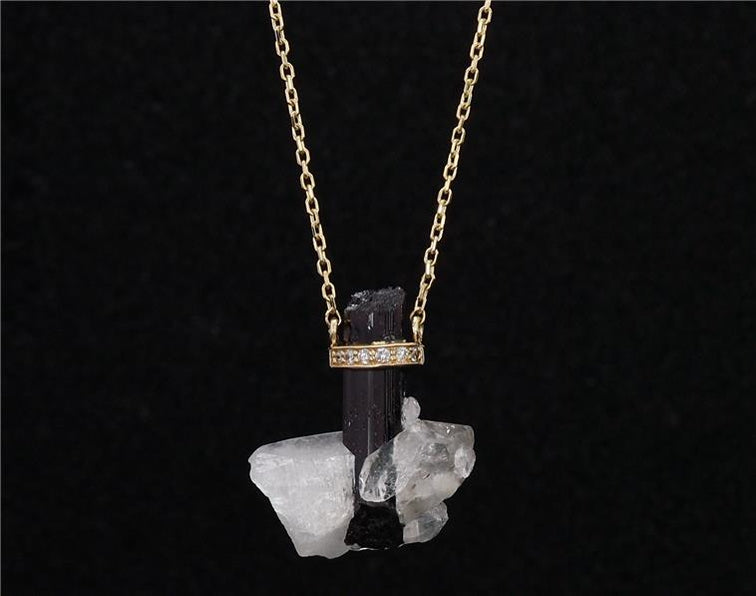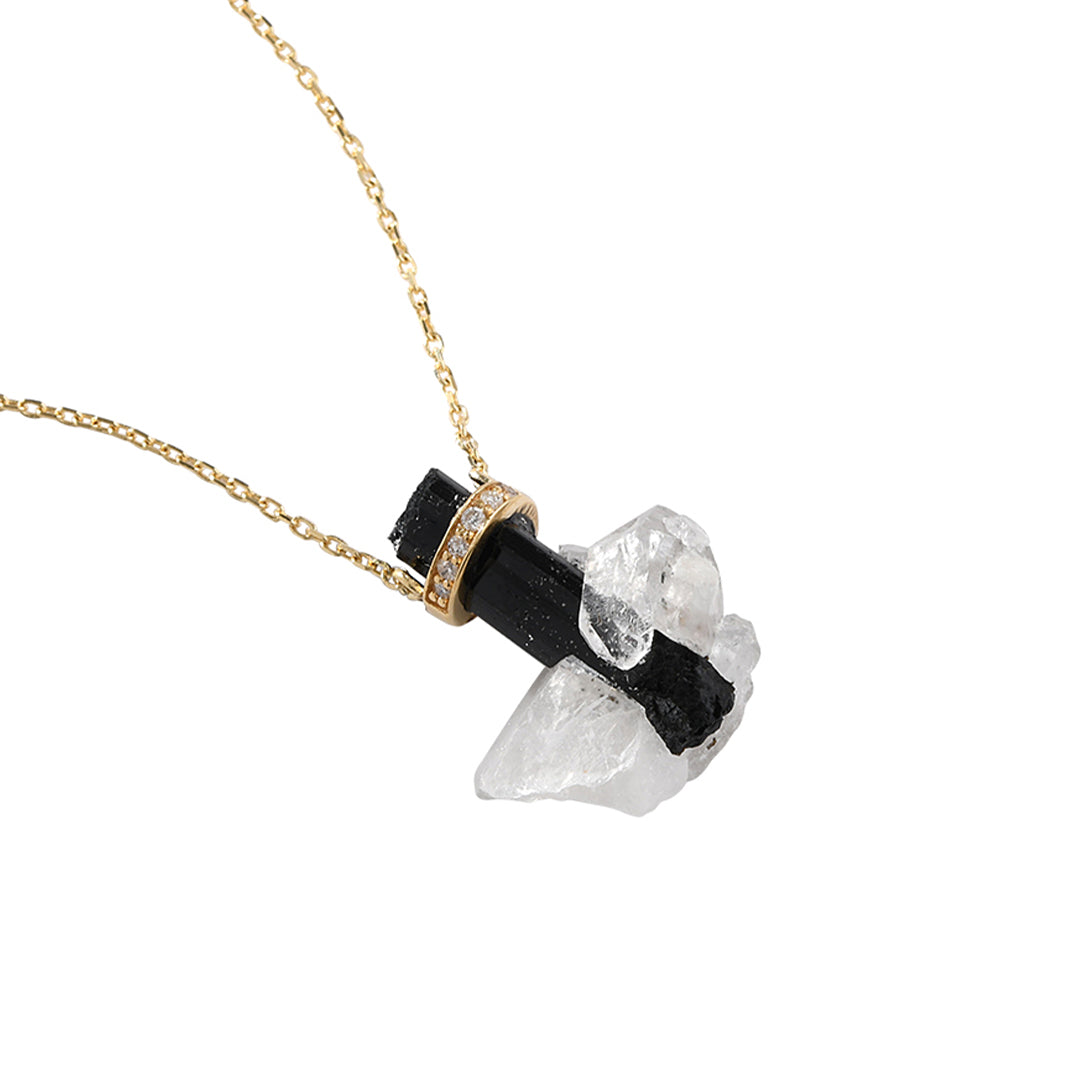 Hems Jewellery 18 Ayar Altın Raw Cut Siyah Turmalin Pırlanta Kolye /2