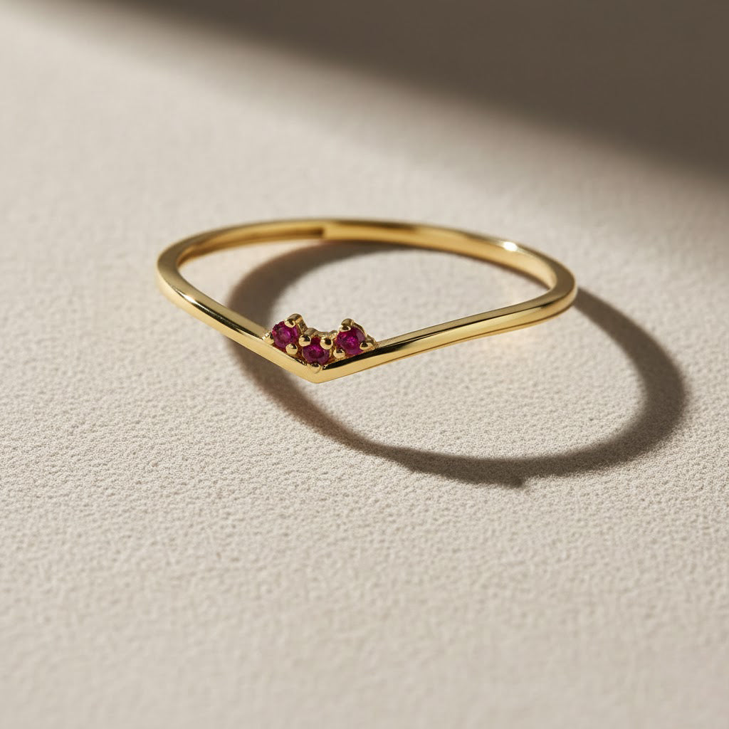 Hems Jewellery 14 Ayar Altın Minimal Tria Yakut Yüzük