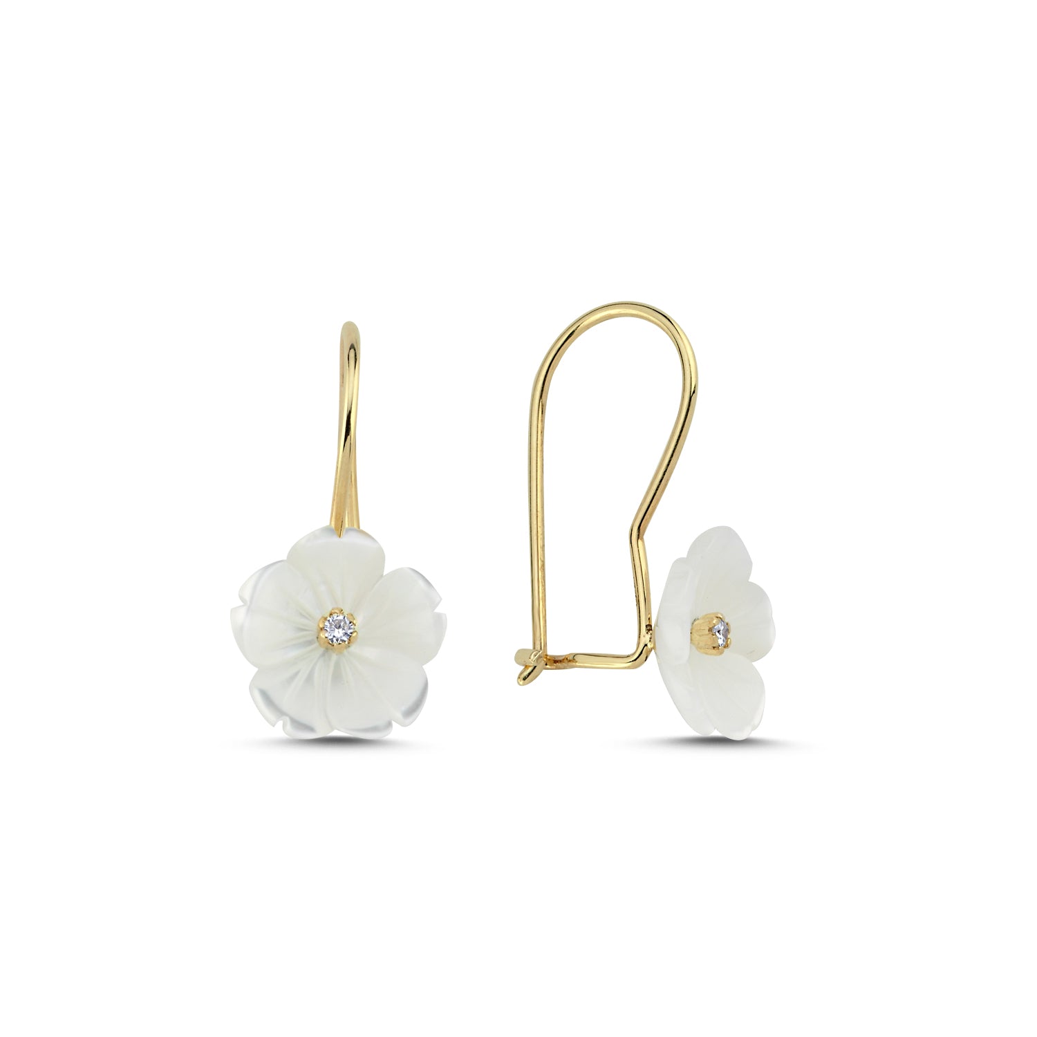 14 Ayar Altın Jasmine Vintage Pırlantalı Beyaz Sedef Küpe