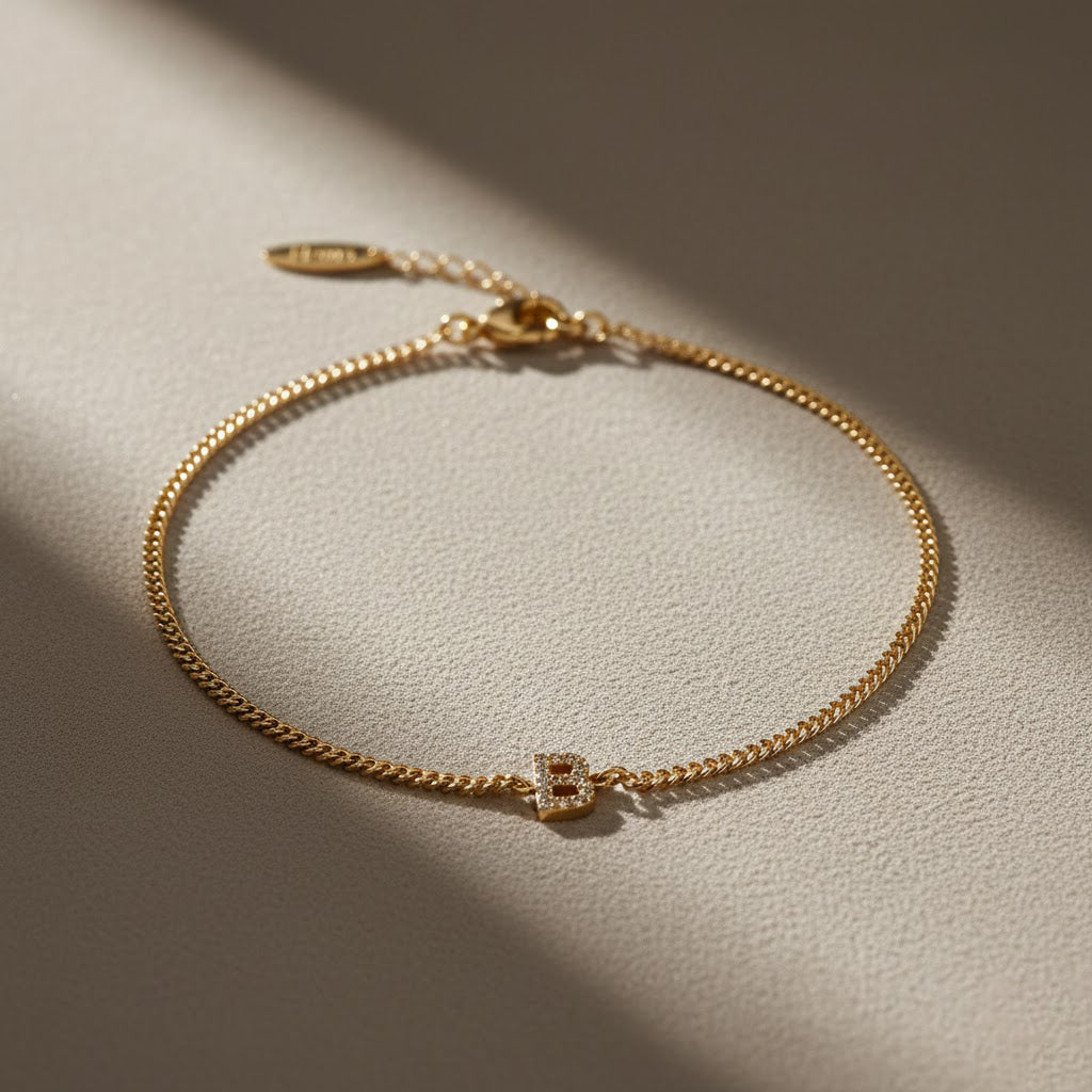 14 Ayar Altın Pırlanta Gurme Harfli Bileklik B
