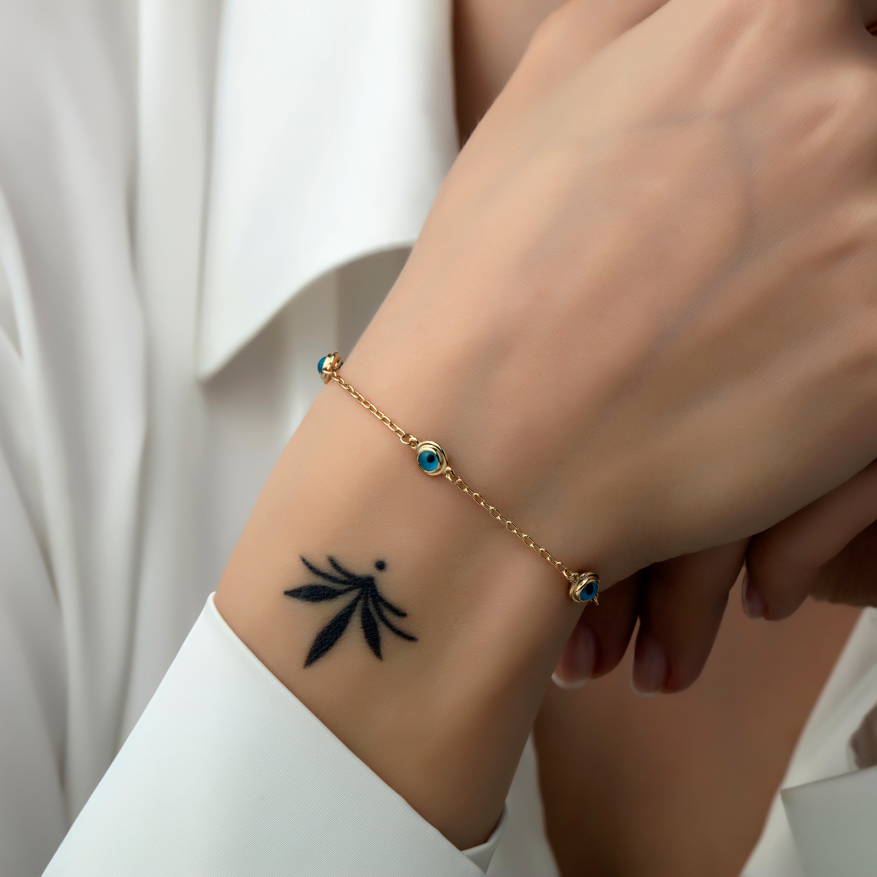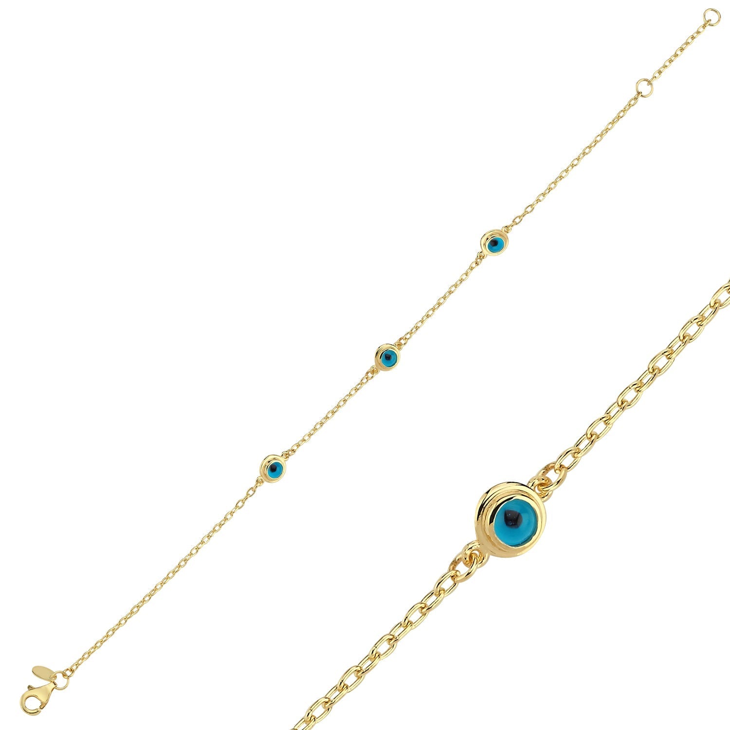 14 Ayar Altın Üçlü Nazar Bileklik