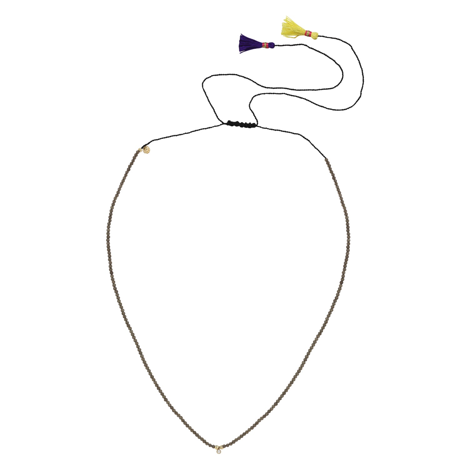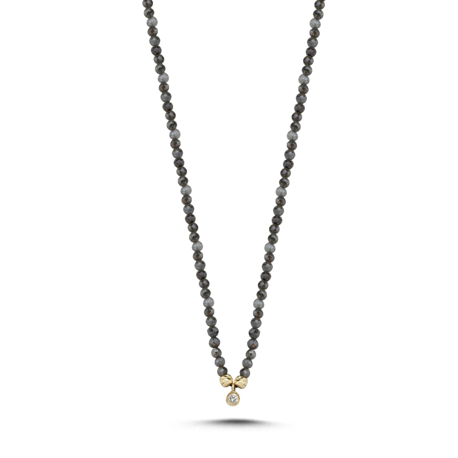 14 Ayar Altın Dumanlı Kuars Taşlı Pırlanta Püsküllü Kolye