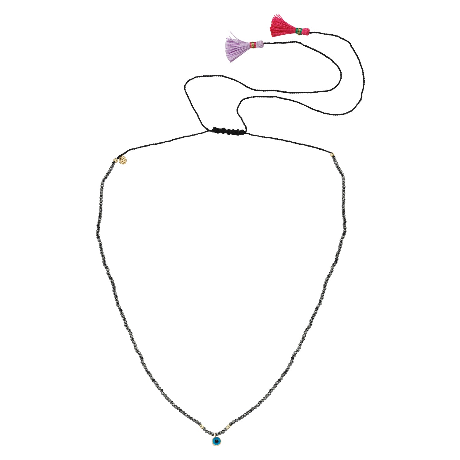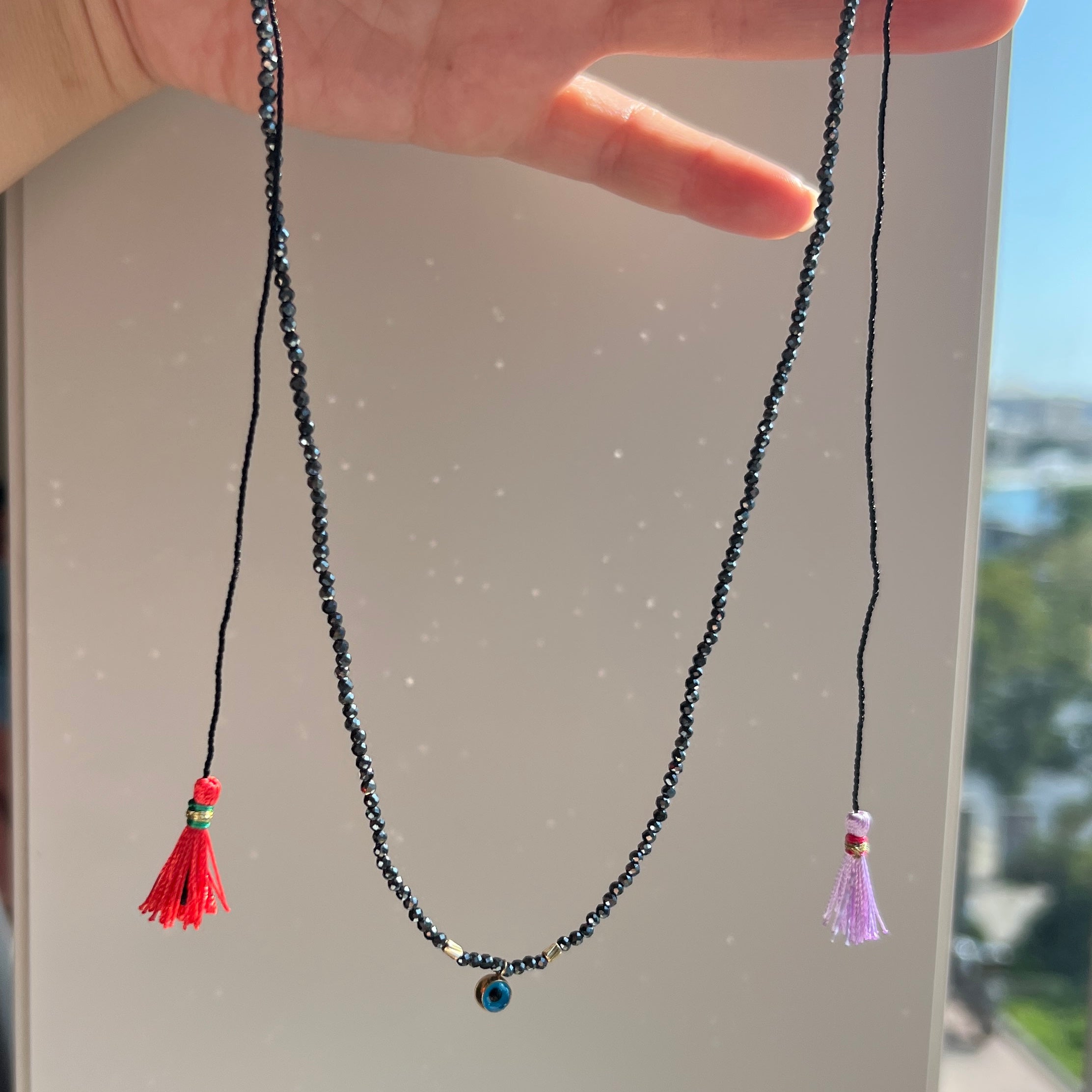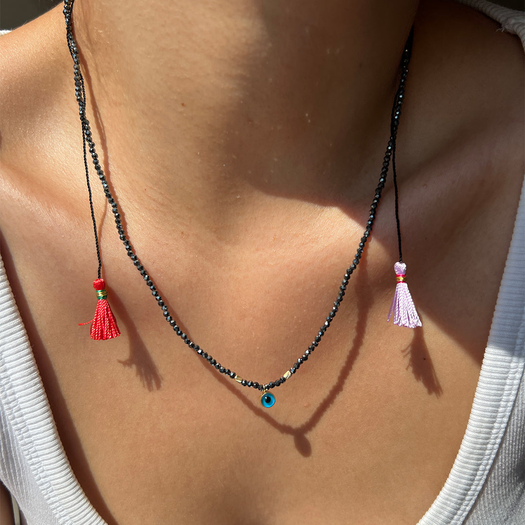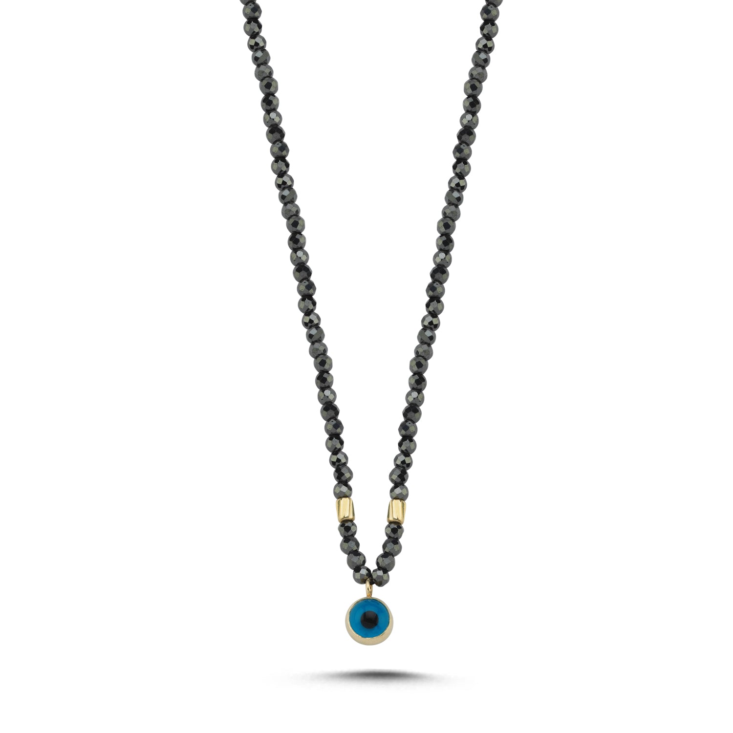 14 Ayar Altın Hematit Taşlı Nazar Püsküllü Kolye