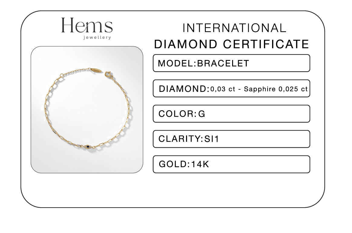 14 Ayar Pırlanta Safir Nazar Bileklik