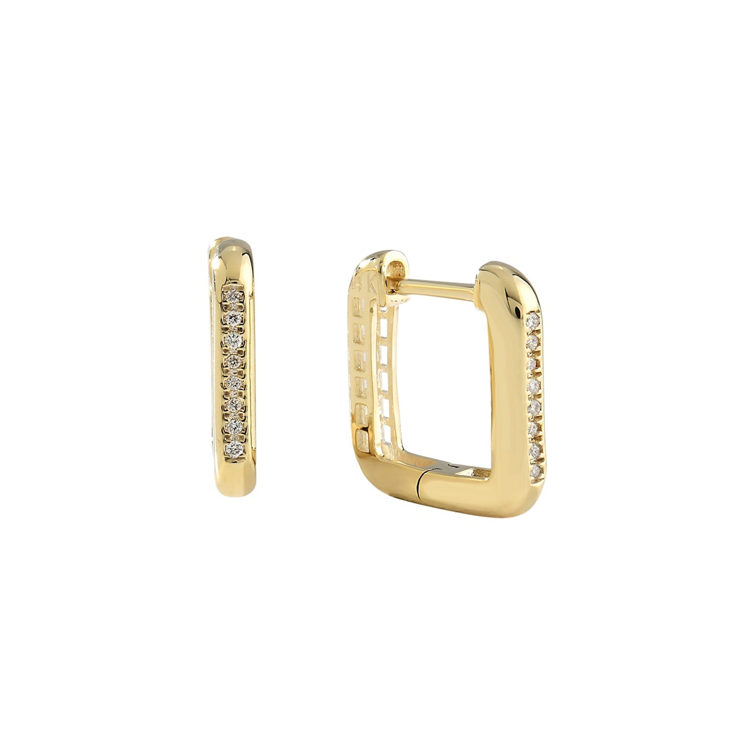 14 Ayar Altın Pırlanta Taşlı Dikdörtgen Küpe