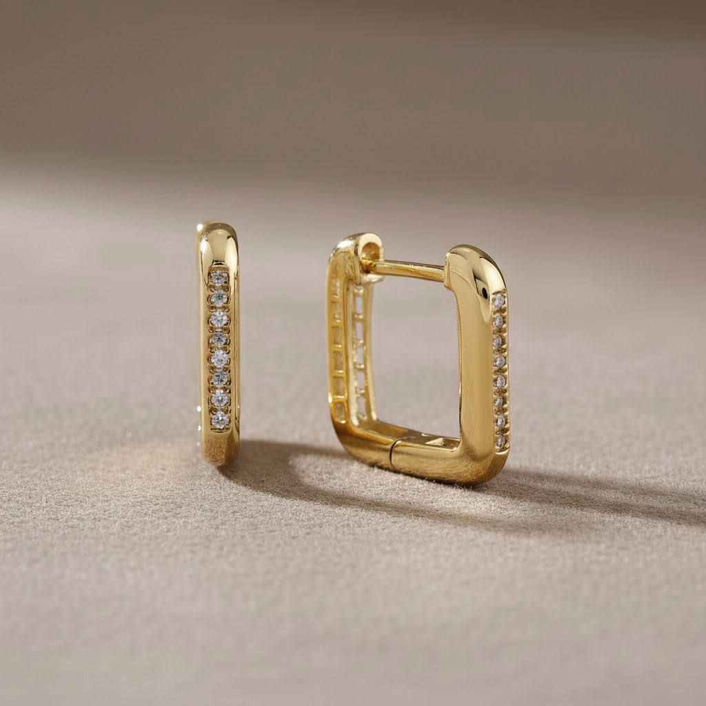14 Ayar Pırlanta Taşlı Dikdörtgen Küpe