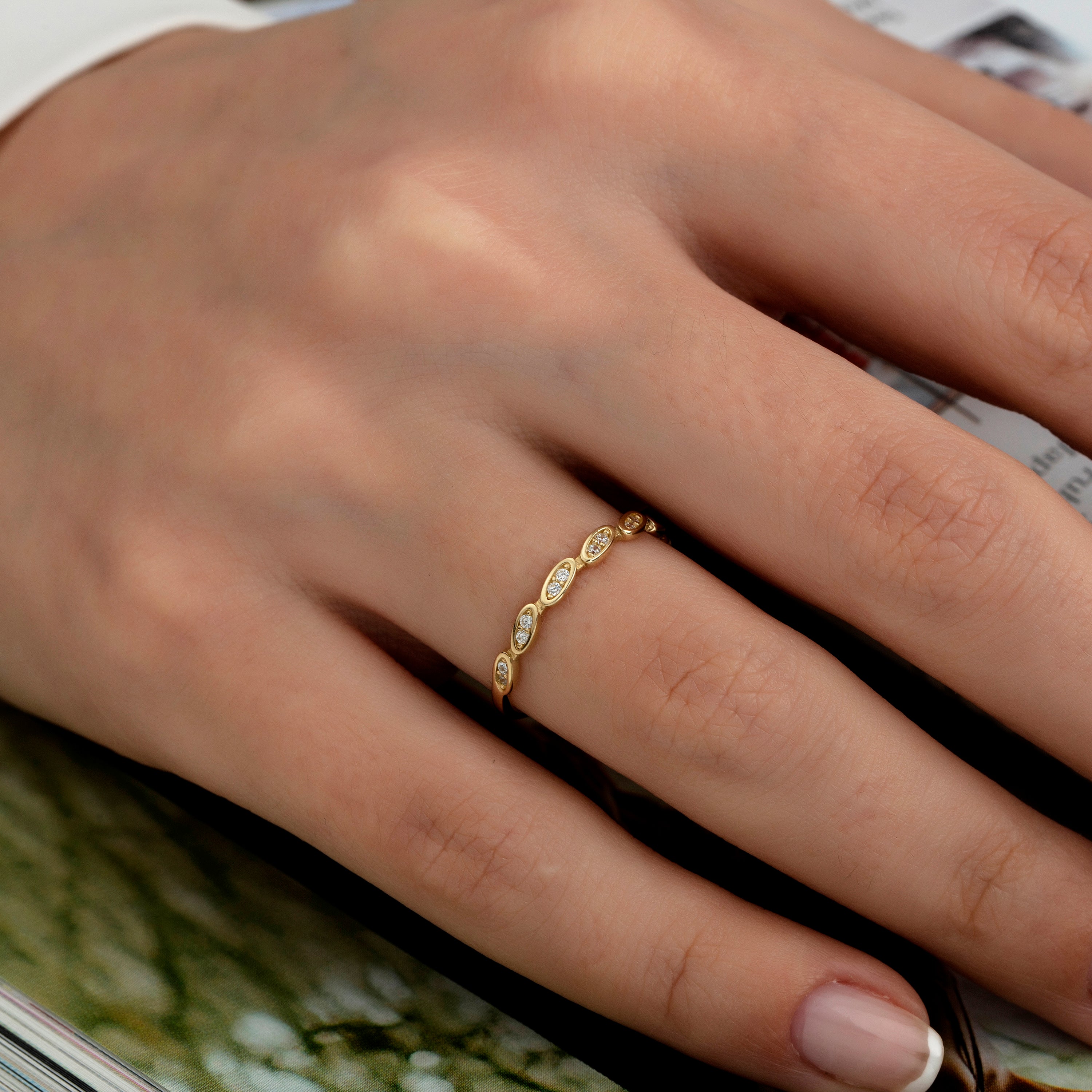 Hems Jewellery Altın Taşlı Kombinlenebilir Minimal Yüzük